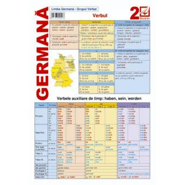 Pliantul de limba germana se adreseaza incepatorilor si vorbitorilor de limba germana de nivel intermediar (A1-A2, B1). Acopera sub forma de sinteza elemente de gramatica generala specifice grupului verbal (verbul: verbele auxiliare, modul indicativ, imperativ, conjunctiv, verbele modale, prepozitii contopite cu articolul).