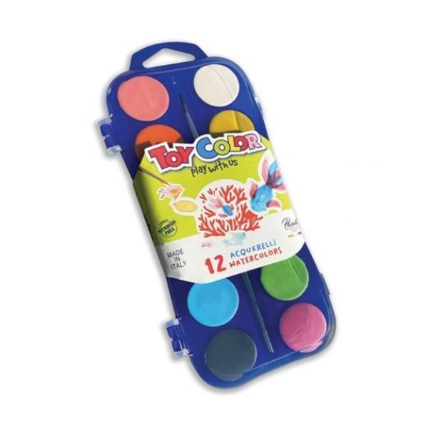 Acuarele 12 culori, cu pensula, Toy Color TC704