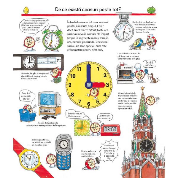 Acest titlu încearcă să răspundă întrebărilor celor mici legate de ceas și timp: Ce este și cât durează timpul? De ce există noapte și zi sau vară și iarnă? Cât durează o lună? Ce este un calendar? Au existat mereu ceasuri? Ce este un ceas digital? Cum se citește ceasul? Este aceeași oră peste tot în lume?