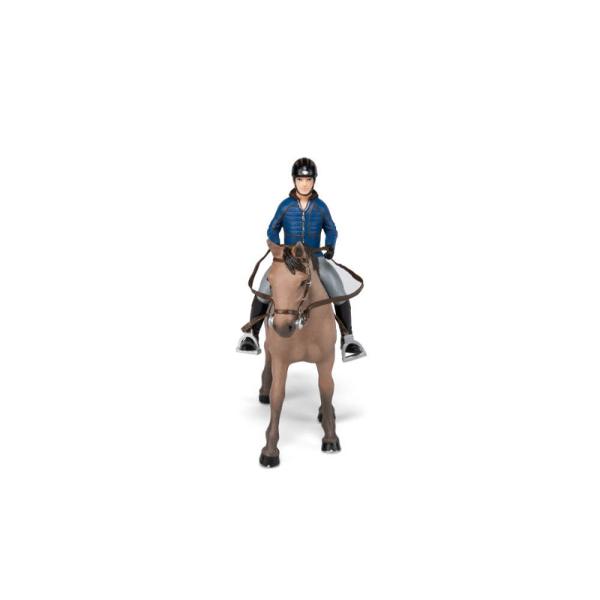 Figurina Papo - Set echitatie Cal si calaret in jacheta albastra este o jucarie pictata manual care atrage prin detaliile care redau infatisarea personajelor aproape real.