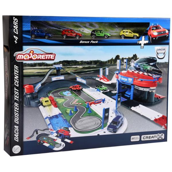 Majorette Creatix Dacia Duster Test Center este bazat pe un centru de testare Dacia. Aici fanii de toate varstele isi pot testa vehiculele. Cladirea contine o statie de incarcare, un elevator pentru reparatii rapide si o spalatorie. Soferii isi pot testa abilitatile pe pista cu lansator, curbe de drift si pista de off-road. Setul include 4 vehicule Dacia Duster, din metal, lungime 7.5 cm