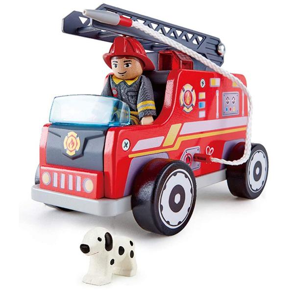Faceti drum, faceti drum! Iata ca vine masina de pompieri in drum spre un incendiu! Puneti scara astfel incat pompierul si cainele sau sa poata lupta impotriva flacarilor si sa salveze cladirea in flacari. Conduceti masina de pompieri la locul unui incendiu. Puneti scara si faceti pompierul sa urce in varf. Ajuta-l sa salveze locuinta folosind furtunul pe flacari. Trimiteti cainele de salvare pentru a localiza persoanele care au nevoie de ajutor. &bull Camion de pompieri robust. Rotile camionului se rotesc si scara este reglabila Ajuta copiii sa invete despre siguranta la in cazul unui incendiu. Jucariile sunt realizate din lemn, folosind materiale ecologice, vopsite in culori atragatoare cu vopsele nontoxice, care depasesc cele mai inalte si stricte standarde internationale de siguranta si calitate, precum EN71, ISO9001, ASTM F963 si altele. De multi ani, Hape a creat jucarii fantastice, de inalta calitate, folosind materiale ecologice si durabile, fiecare produs fiind atent proiectat pentru a stimula abilitatile senzoriale, fizice si emotionale.