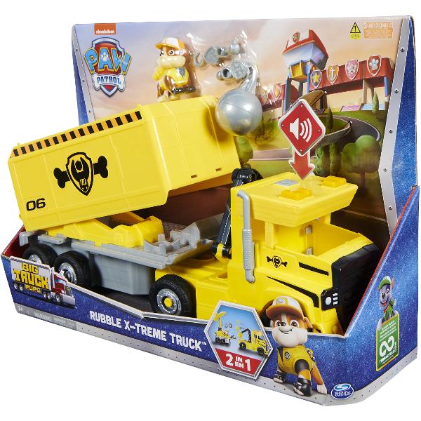 Aici avem Big Rig-ul lui Rubble. Are remorca care se detaseaza de cabina, folositi lopata articulata din spatele cabinei pentru a sapa, remorca se deschide intr-un al doilea vehicul, trageti Rubble inauntru si urmariti cum se extinde macaraua. Macaraua vine cu 2 accesorii niste brate de apucare si o bila pentru demolat. Utilizati bila pentru demolat pentru a elimina orice resturi care se afla in calea misiunii, apasati butonul de pe partea de sus a cabinei pentru a activa luminile si sunetele, cu totul ambalat frumos si gata pentru urmatoarea noastra misiune