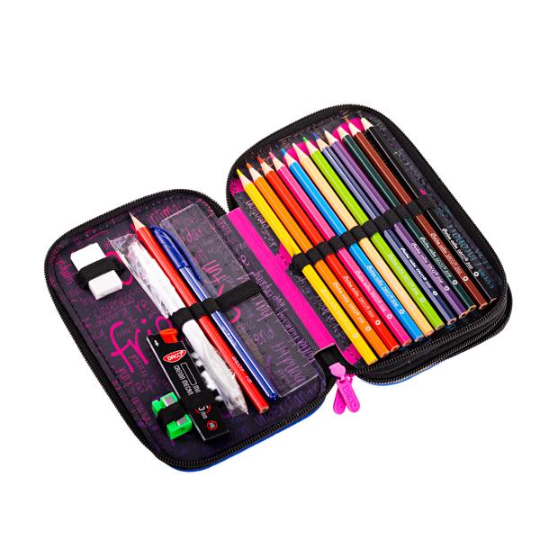 Penarul cu model "Best friends forever" de la DACO este un accesoriu frumos si practic, conceput pentru a va ajuta sa va pastrati stiloul, creioanele, markerele si alte obiecte de papetarie organizate. Este prevazut cu doua compartimente principale, fiecare cu propriul sau fermoar, oferind o separare eficienta a continutului.