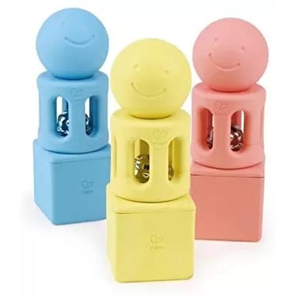Zornaitoarele in forme geometrice, sunt proiectate in mod special pentru a se potrivi perfect in mainile celor mici si ii va ajuta sa-si abilitatile de coordonare mainii-ochi atunci cand sunt agitate. Realizate din materiale pe baza de orez. Agitati-le pentru a va distra bebelusul cu sunetele pe care le emit .Pe masura ce copiii cresc, incurajeaza-i sa incerce cateva activitati de stivuire si sortare ,uitandu-va prin lentilele colorate ale blocului. Pachetul contine un clopot si o jucarie patrata care contine margele de plastic. Pacehtul contine o zornaitoare roz, una galbena si un albastra. Dimensiuni si forme proiectate de experti, care se potrivesc perfect mainilor mici. Jucariile sunt realizate din lemn, folosind materiale ecologice, vopsite in culori atragatoare cu vopsele nontoxice, care depasesc cele mai inalte si stricte standarde internationale de siguranta si calitate, precum EN71, ISO9001, ASTM F963 si altele. De multi ani, Hape a creat jucarii fantastice, de inalta calitate, folosind materiale ecologice si durabile, fiecare produs fiind atent proiectat pentru a stimula abilitatile senzoriale, fizice si emotionale.
