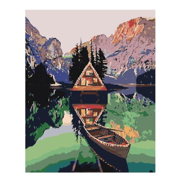 Set de pictura pe numere 40x50 cm - Cabana pe lac, panza de bumbac pe rama lemn 1045